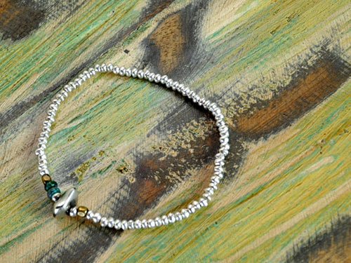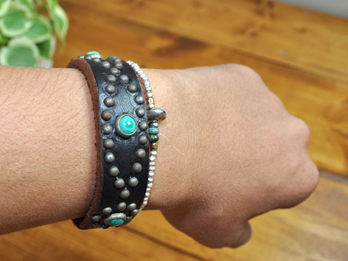 一粒一粒を全て手作業にて削り出し成形をして製作したターコイズ、シルバービーズを使用したアクセサリー。こちらの商品は1重巻きでブレスレットの仕様となります。どんなコーディネートにも合わせ易く、ユニセックスでご使用して頂けます。トップのシルバービーズには〈39〉のロゴが彫り込まれています。