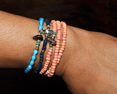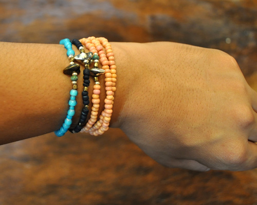 こちらはシンプルなネックレスもしくは3連にしてブレスレットとしても使用できる万能アイテムです。トップのシルバービーズには〈39〉のロゴが彫り込まれています。